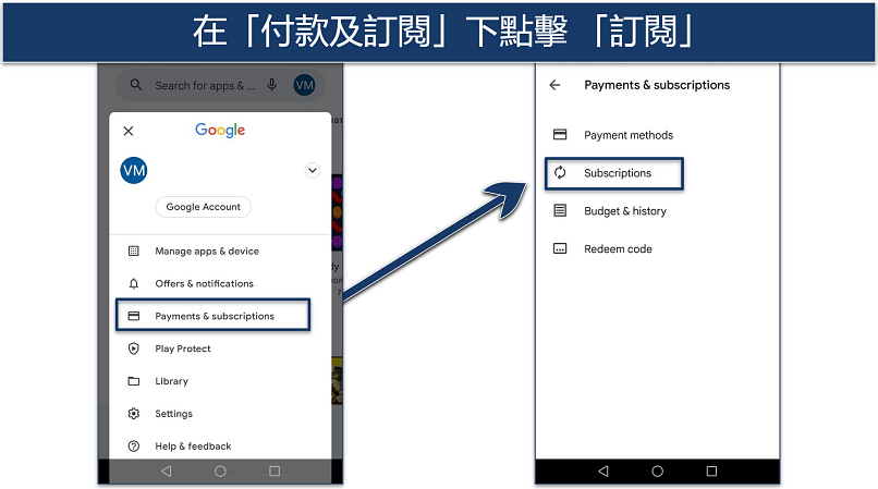 若之前透過 Google Play Store 訂閱服務,就必須透過 Google Play 賬戶取消賬戶,然後再向 ExpressVPN 申請退款。